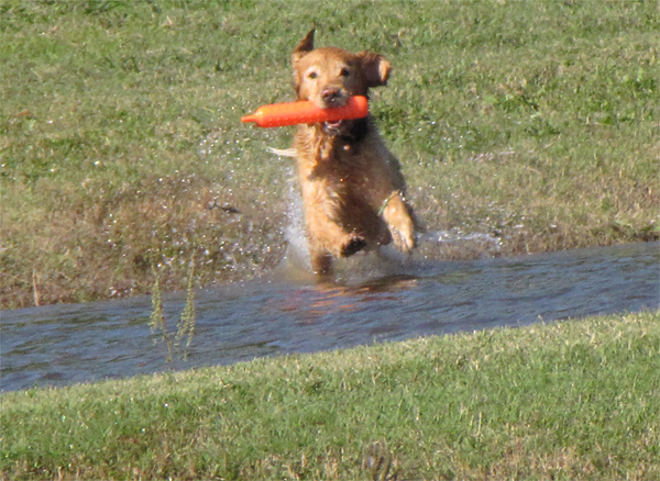 A fantastic work ethic, Annie loved her work - water and land. An attentive student who responsed to little pressure. Friendly, outgoing and loyal; a very loved and loving member of our family. Her strong marking skills, brilliant water entry and a host of other natural talents made Annie a serious consideration for breeding what's next for the Gallo Gold Retriever. She was amateur trained by her owner, Cindy Vinzant, from her beginning through advanced levels. To quote Cindy's training partner, Steve Hester: "Annie is one of a kind - a remarkable retriever. She's a bright, attentive, and focused delight to work with in the field and on the truck - truly a 'golden' treasure."