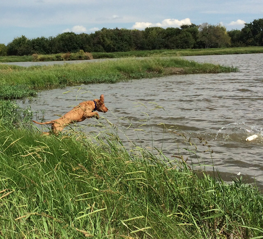 She has been a little go getter from the beginning. She runs hard, big jumps in the water, and is good marker. She has a great personality and has that look in her eye like she's about to do something she shouldn't be doing.