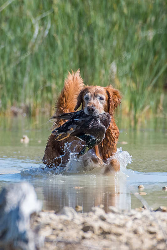 Having earned his AKC Master Hunter (MH), UKC/HRC Hunting Retriever Champion (HRCH) and Upland Hunter (UH) titles along with several additional awards and accolades. In 2013, he attained a JAM award in the Golden Retriever Club of America's Qualifying Stake. Tucker qualified for the 2015 Master National. Proven in his ability to mesh instinct and instruction, he illustrates the definition of "a gentleman's dog" in the field. In the Spring of 2017, Tucker joined the HRC 500 Points Club!